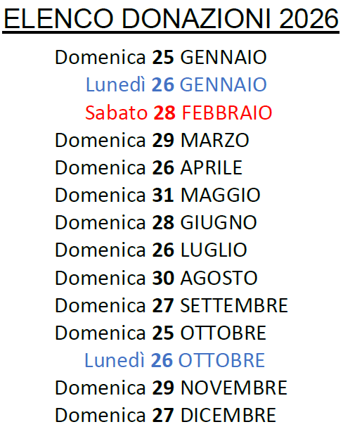 è disponibile il calendario delle donazioni per l’anno 2026.